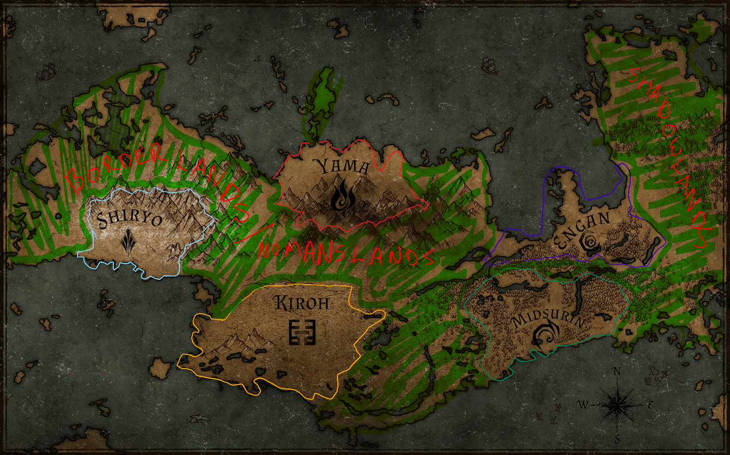 Green shaded area in the map below are the Borderlands that can be explored and conquered by warriors